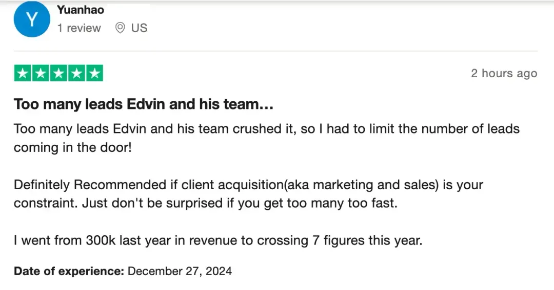 "The leads were great...I think itâs definitely going to help me grow the business more"