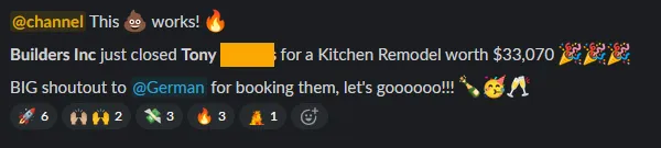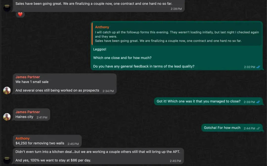 We work on a Pay-On-Results Basis. Meaning you would only pay per appointment that you go on. The average partner goes on 10 - 25 appointments per month, and closes 5 - 10 projects from that, and on average has a 5% cost of marketing. Weâll talk exact numbers on the call.